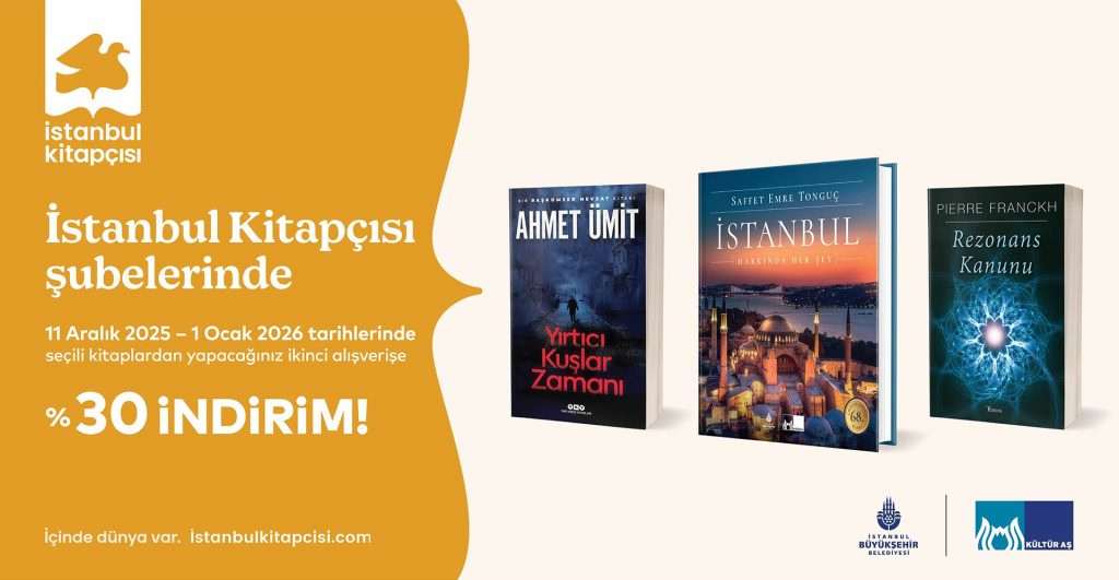 İstanbul’un kültür duraklarından biri haline gelen İstanbul Kitapçısı, 11 Aralık 2025 – 1 Ocak 2026 tarihleri arasında seçili kitaplarda ikinci ürüne %30 indirim fırsatı sunuyor. Yeni yıla yaklaşırken kitaplığınızı zenginleştirmek, sevdiklerinize hediye alternatifleri yaratmak için bu özel kampanyayı kaçırmayın.