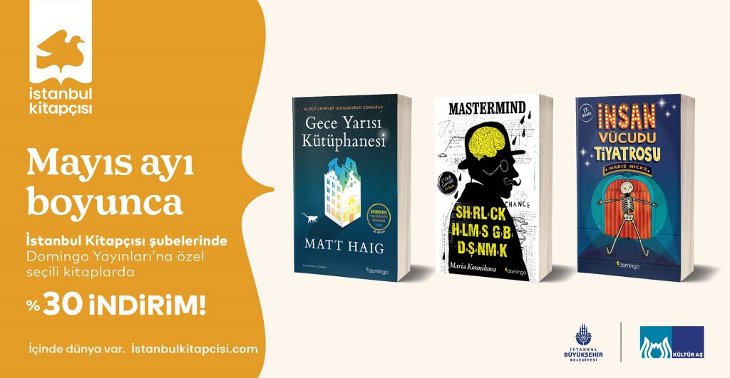 Mayıs ayı boyunca devam edecek kampanya kapsamında, İstanbul Kitapçısı şubelerinde satışa sunulan Domingo Yayınları’nın seçili kitaplarında %30 indirim fırsatı sunuluyor.