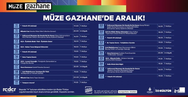 Şehrin en canlı kültür ve sanat duraklarından biri olan Müze Gazhane, aralık ayında da şehrin enerjisini odağına alıyor. Konserlerden söyleşilere ve yaratıcı atölye buluşmalarına uzanan...